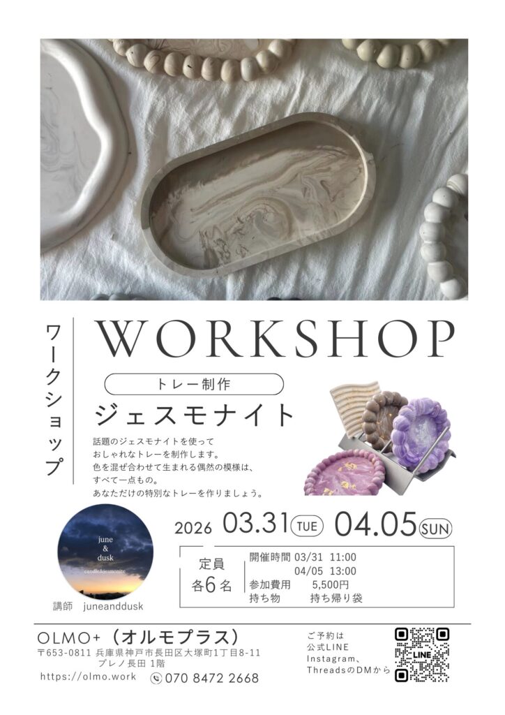 そんな方に知ってほしいのが、神戸・長田にある olmo+(オルモプラス) のジェスモナイトトレイ作りワークショップです。