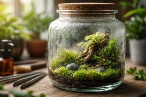 緑の苔と小さなシダのテラリウム