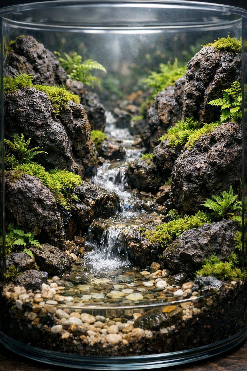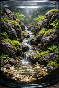 溶岩石で渓流を表現したテラリウム